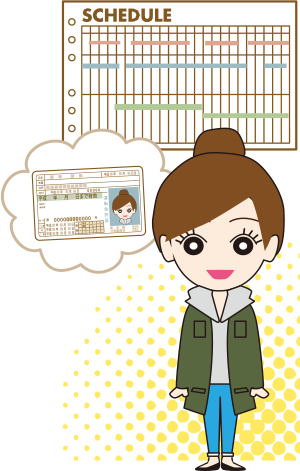 自分のスケジュールと教習所作成スケジュールの調整は入校手続き時に教習所にて行います。確実に教習所に通える予定表をご準備いただき、「入校手続き〆切日」までに教習所で手続きをお済ませください。 (入校時に組んだスケジュールに沿って教習を進めていただきます。)教習途中に何度もスケジュール変更ができるプランではありません。